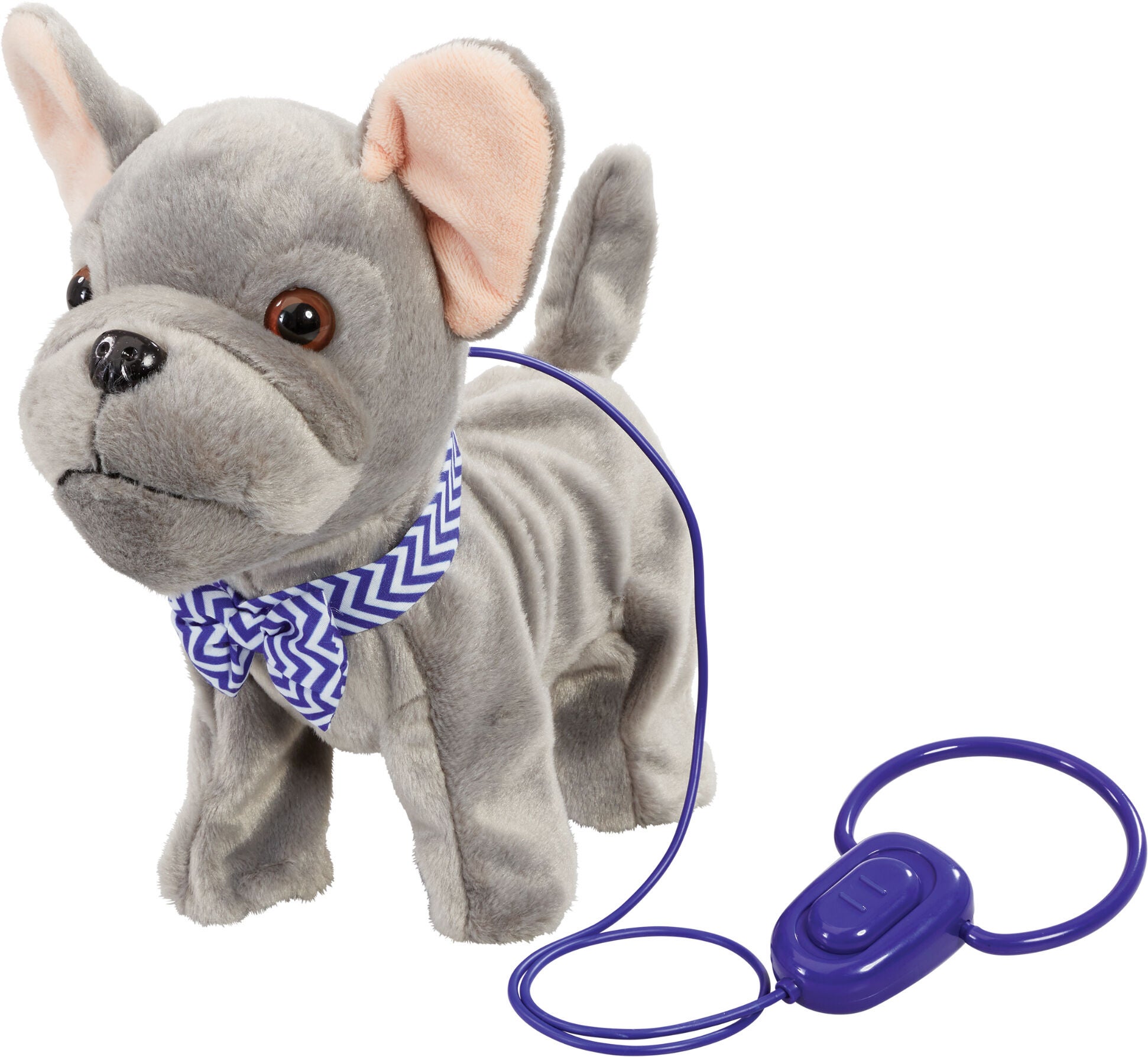 Interaktiv fransk bulldog fra Happy Pets med sjove effekter. Perfekt til timevis af fantasifuld leg. - Gøer og logrer med halen. - Styr hvalpen med knappen på hundesnoren. - Fint syede detaljer. - Blødt design. - CE-mærket. - Anbefalet alder: Fra 3 år. - Polyester. - Batterier medfølger ikke.