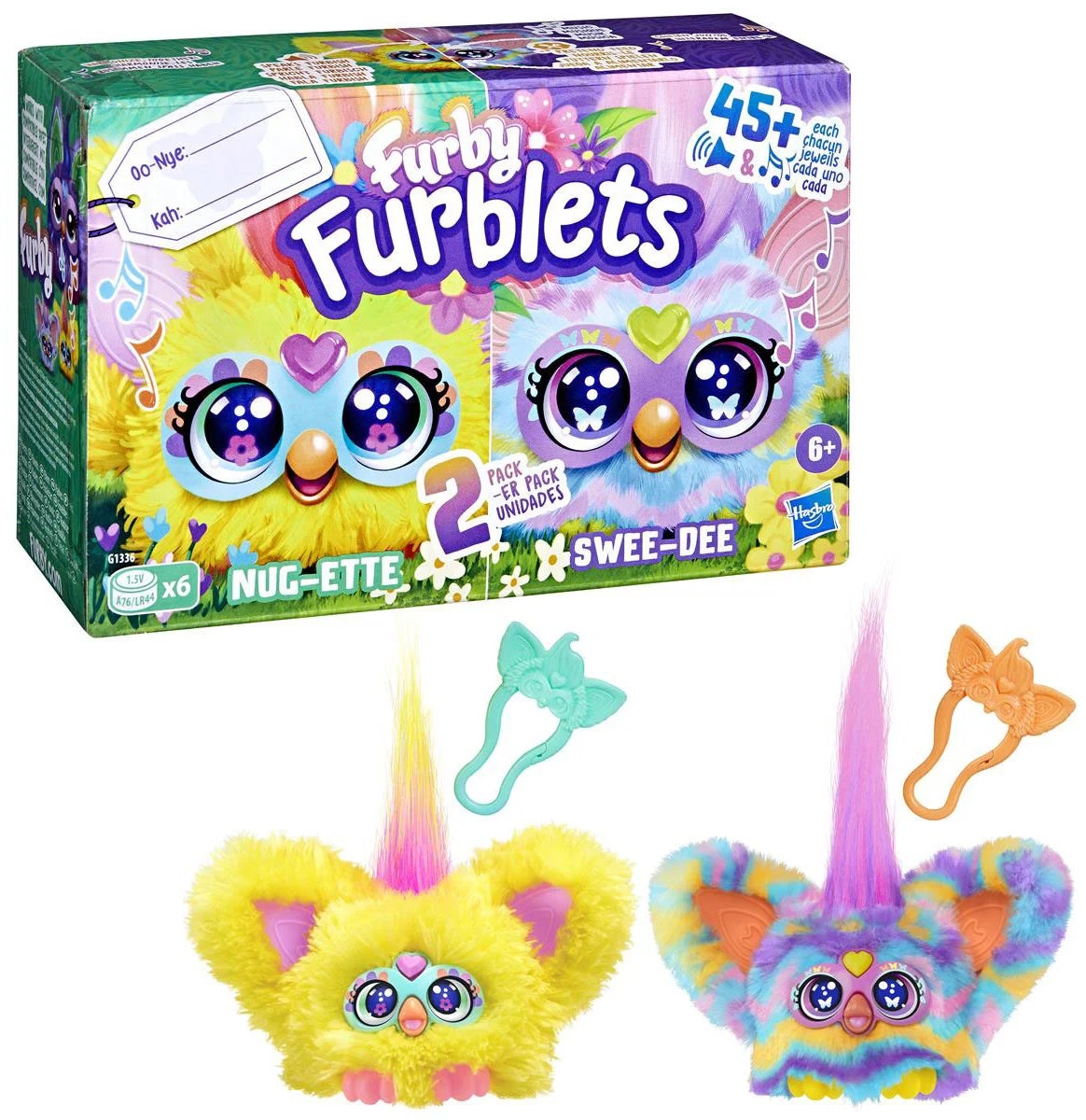 Interaktiv bamse fra Furby med masser af spændende funktioner at udforske. Perfekt til mange timers sjov. - Indeholder: 2 interaktive bamser. - 45 sange, lyde og Furby-sætninger. - Når man krammer, trykker, kæler og mader den, reagerer den. - Blinkende øjne. - Lyseffekter. - CE-mærket. - Anbefalet alder: Fra 6 år. - Plastik, polyester. - Batterier medfølger.