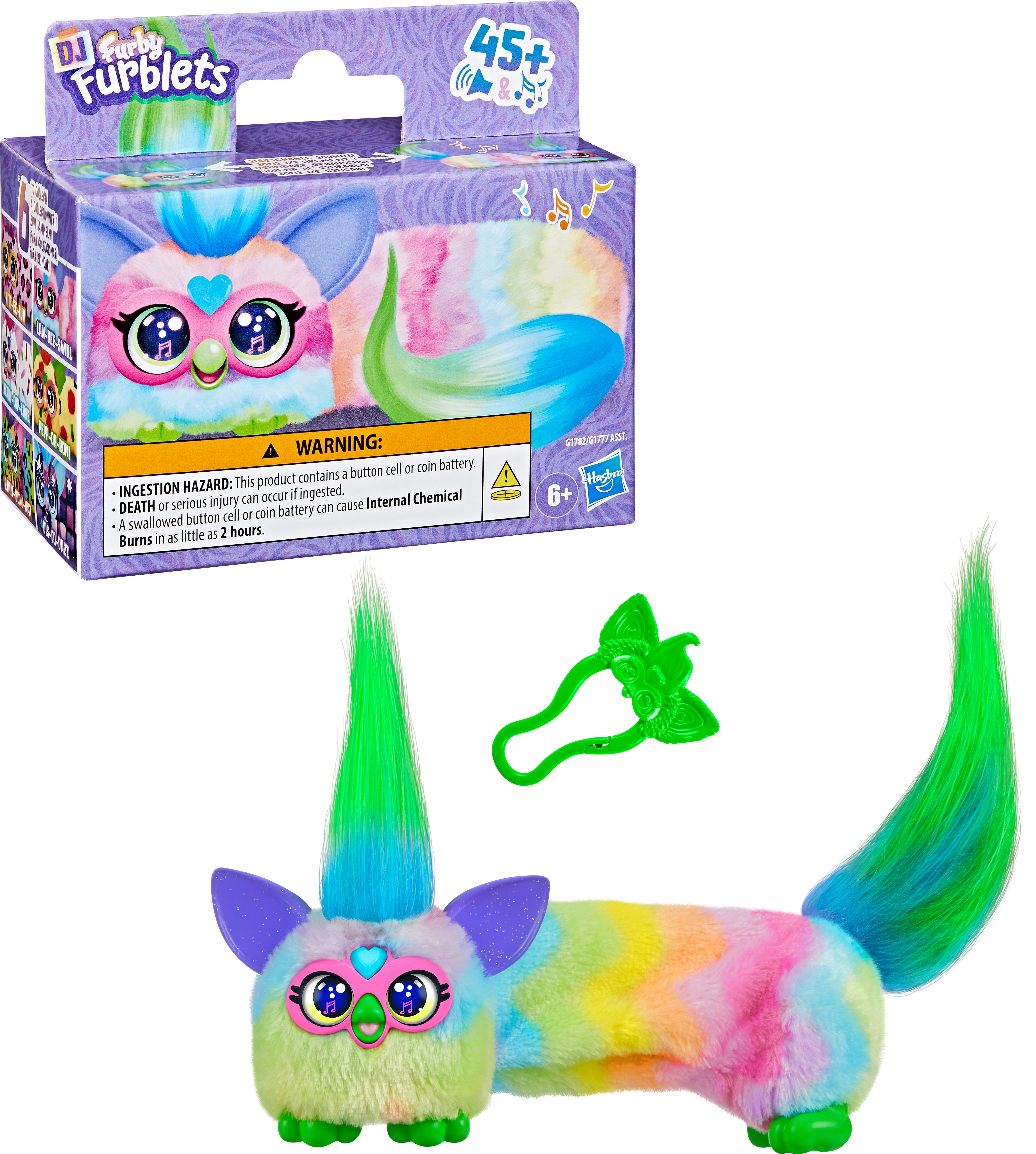 Dj Furblet interaktiv bamse fra Furby med flere forskellige lydeffekter at udforske. Perfekt til mange timers sjov. - 45 sange, lyde og Furby-sætninger. - Nøgleringsclips medfølger. - Blødt design. - Trykknapper. - Saml på alle produkterne i serien. - CE-mærket. - Anbefalet alder: Fra 6 år. - Plastik, polyester. - Batterier medfølger.