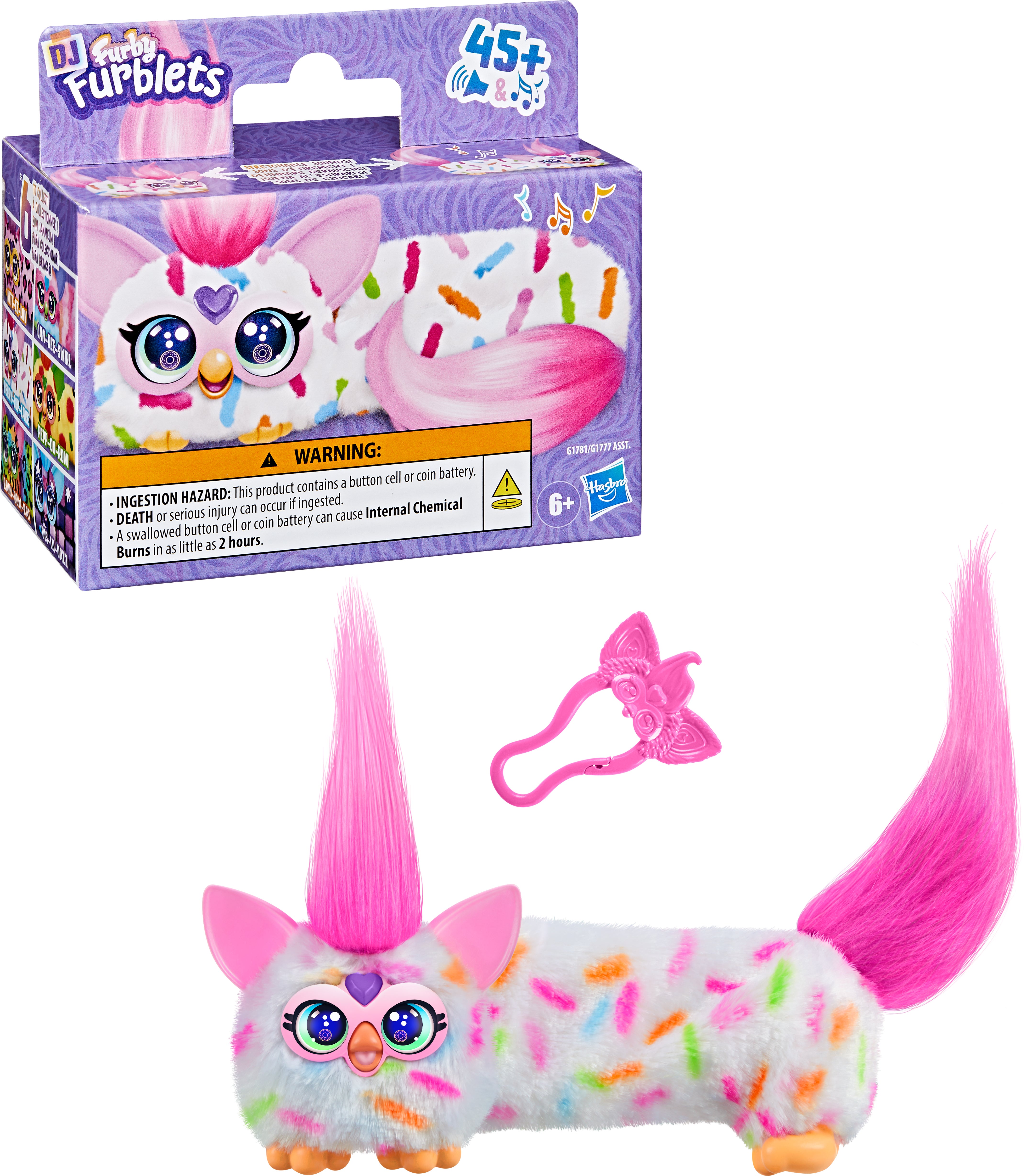 Dj Furblet interaktiv bamse fra Furby med flere forskellige lydeffekter at udforske. Perfekt til mange timers sjov. - 45 sange, lyde og Furby-sætninger. - Nøgleringsclips medfølger. - Blødt design. - Trykknapper. - Saml på alle produkterne i serien. - CE-mærket. - Anbefalet alder: Fra 6 år. - Plastik, polyester. - Batterier medfølger.