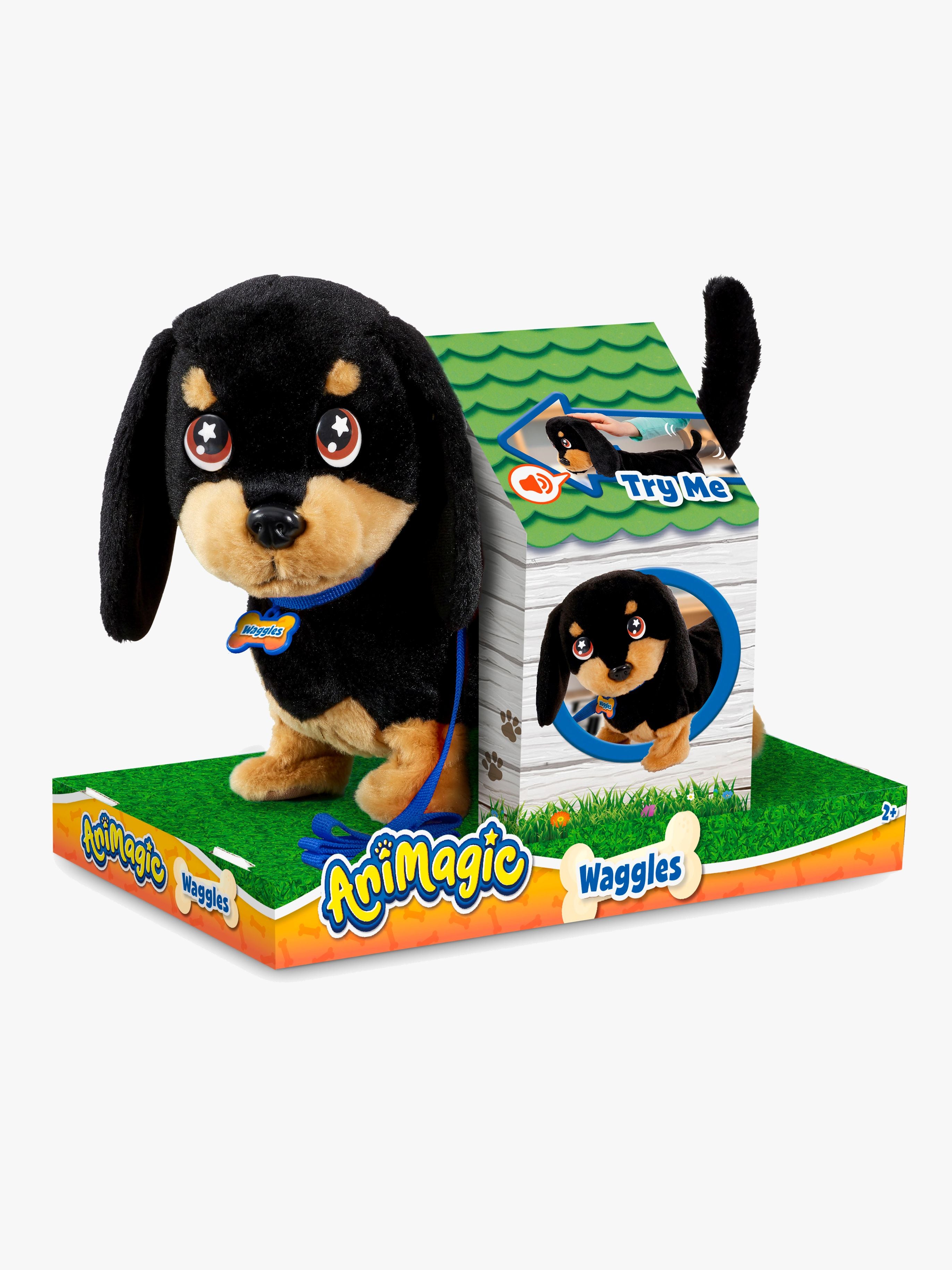 Dette Animagic Interaktivt Legetøj produkt er den perfekte følgesvend til de små, der elsker at lege og bruge deres fantasi. Gravhunden Waggles er designet til at underholde og engagere børn med sin bløde fremtoning og realistiske lydeffekter.