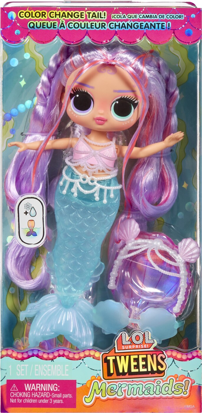 Gør dig klar til at dykke ned i en fortryllende verden af magisk havfruesjov med den helt nye L.O.L. Surprise Tweens Mermaid Lana Marine modedukke med blændende tilbehør til udpakning!...