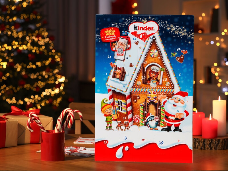 Tæl ned til juleaften på bedste vis med denne chokoladejulekalender fra Kinder. Et lille stykke magisk god chokolade hver dag vil helt sikkert lyse de ellers mørke decemberdage op!