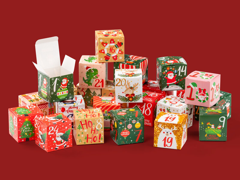 Hvis du vil skabe en personlig nedtęlling til jul, er dette den ultimative julekalender! Kalenderen består af i alt 24 små ęsker med flotte juleprint på, klar til at blive fyldt med ethvert indhold.