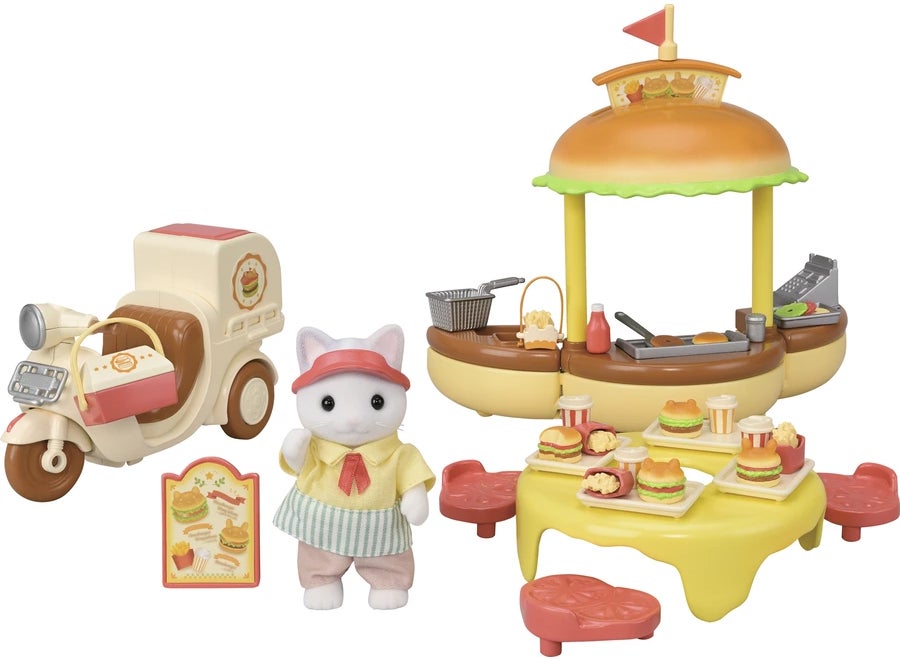 Sylvanian Families Legesæt Hamburgerbod er den perfekte tilføjelse til dit barns legeunivers. Dette fantastiske legesæt inviterer til timevis af kreativ leg, hvor børn kan imitere en rigtig hamburgerbod. Med detaljerede figurer og autentiske tilbehør kan dit barn skabe sine egne eventyr og fortællinger. Settet indeholder en hyggelig hamburgerbod med farverige skilte og en række delikate madvarer såsom saftige hamburgere, sprøde pomfritter og forfriskende drikkevarer. Børnene kan lege, at de er kokke, der serverer lækre måltider til deres Sylvanian venner. Hvert element i dette legesæt er designet med omhu og opmærksomhed på detaljer, hvilket gør det til en fornøjelse for både børn og voksne at se på. Legetøjet stimulerer ikke kun fantasi og kreativitet, men også sociale færdigheder, når børnene leger sammen og deler deres madlavningseventyr. Sylvanian Families Legesæt Hamburgerbod er ideel til børn fra 3 år og op. Det er et fantastisk gavevalg til fødselsdage eller særlige lejligheder. Giv dit barn muligheden for at udforske madlavningens verden og skabe uforglemmelige minder med dette sjove og indholdsrige legesæt.
