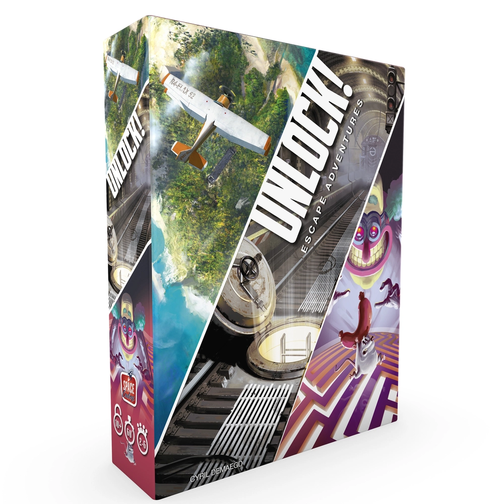 Unlock er et escaperoom i brætspilsformat. I æsken finder I tre unikke scenarier, fyldt med hjernevridende gåder som I skal løse før tiden rinder ud. Unlock Escape Adventures sender jer på opdagelse på en ø fyldt med drilske fælder, i et hemmeligt laborat