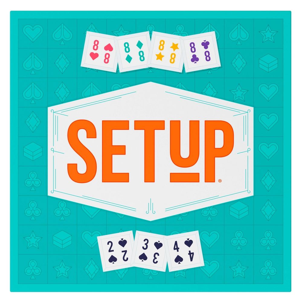 SETUP er et nyt, udfordrende familiespil med talrækker og taktik., som er sjovt for alle aldre. I SETUP skal du kombinere tal og kulører i sæt for at score point og rykke frem på spillepladen. Jo flere brikker du har med i hvert sæt, jo flere point få