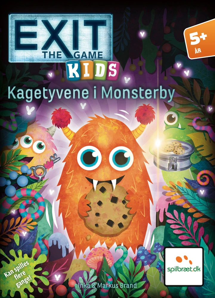 Der er kagemonstre er overalt, og de er meget sultne! De har stjålet ti kagedåser fra dit nabolag og taget dem til deres monsterland. Følg dem modigt hjem i Exit: The Game Børn: Kagetyvene i Monsterby. Når de først er der, vil de stille dig vanskelige
