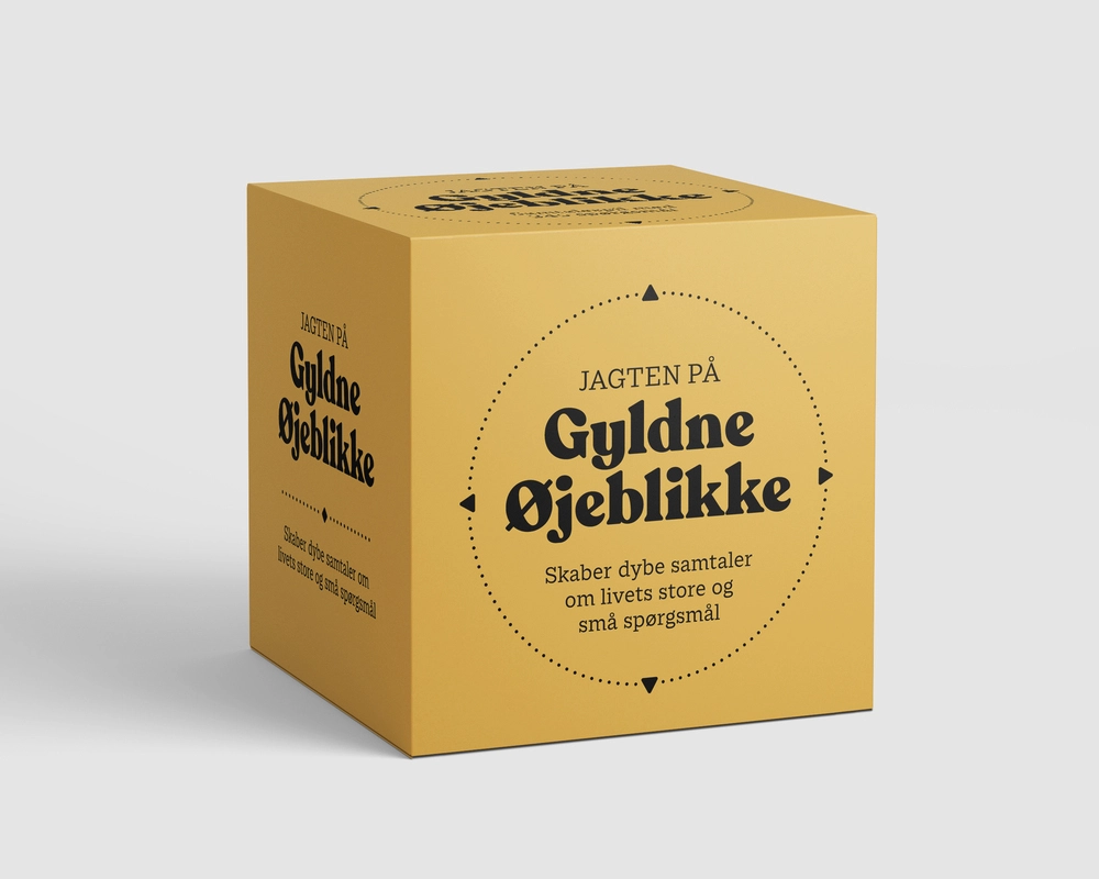"Jagten på Gyldne Øjeblikke" er et samtalespil med 345 spørgsmål, der fokuserer på at bringe mennesker tættere sammen ved hjælp af dybere samtaler om det, der virkelig betyder noget i livet. Spillet startes ved, at den ældste deltager trækker et kort o