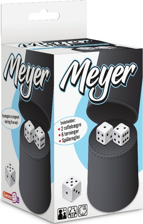 Strategisk terningespil - bluff dig til en sejr! Hvis du ikke kender spillet Meyer, så har du noget at se frem til. Kan du vinde ved at snyde din modstander, eller vil de mon snyde dig? Sættet...