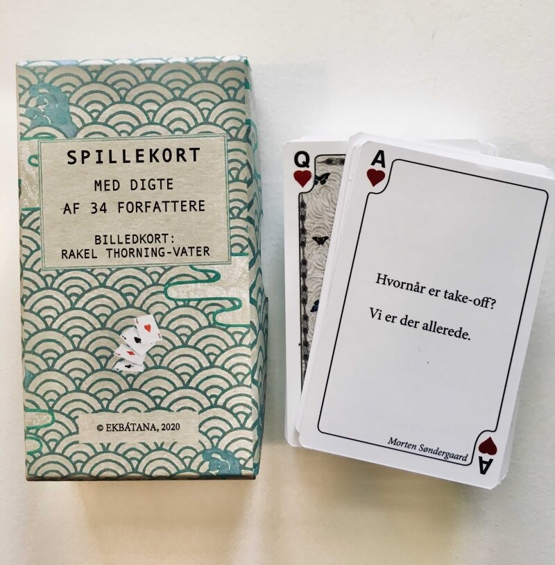 Antologi med digte af 34 forfattere - fra Morten Søndergaard og Pia Juul til endnu ukendte forfattere. Digtene er trykt på spillekortene, og billedkortene er fortolket af kunstner og grafiker Rakel...