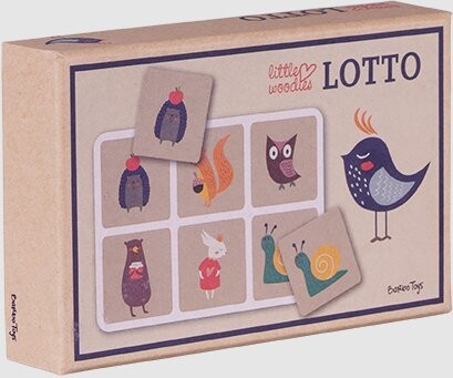 Hvem får først sin plade fuld af brikker og må sige "Lotto"? Her får du det klassiske billedlotteri, med de hyggelige dyr fra Little Woodies. Billedlotteriet er designet i flotte farver...