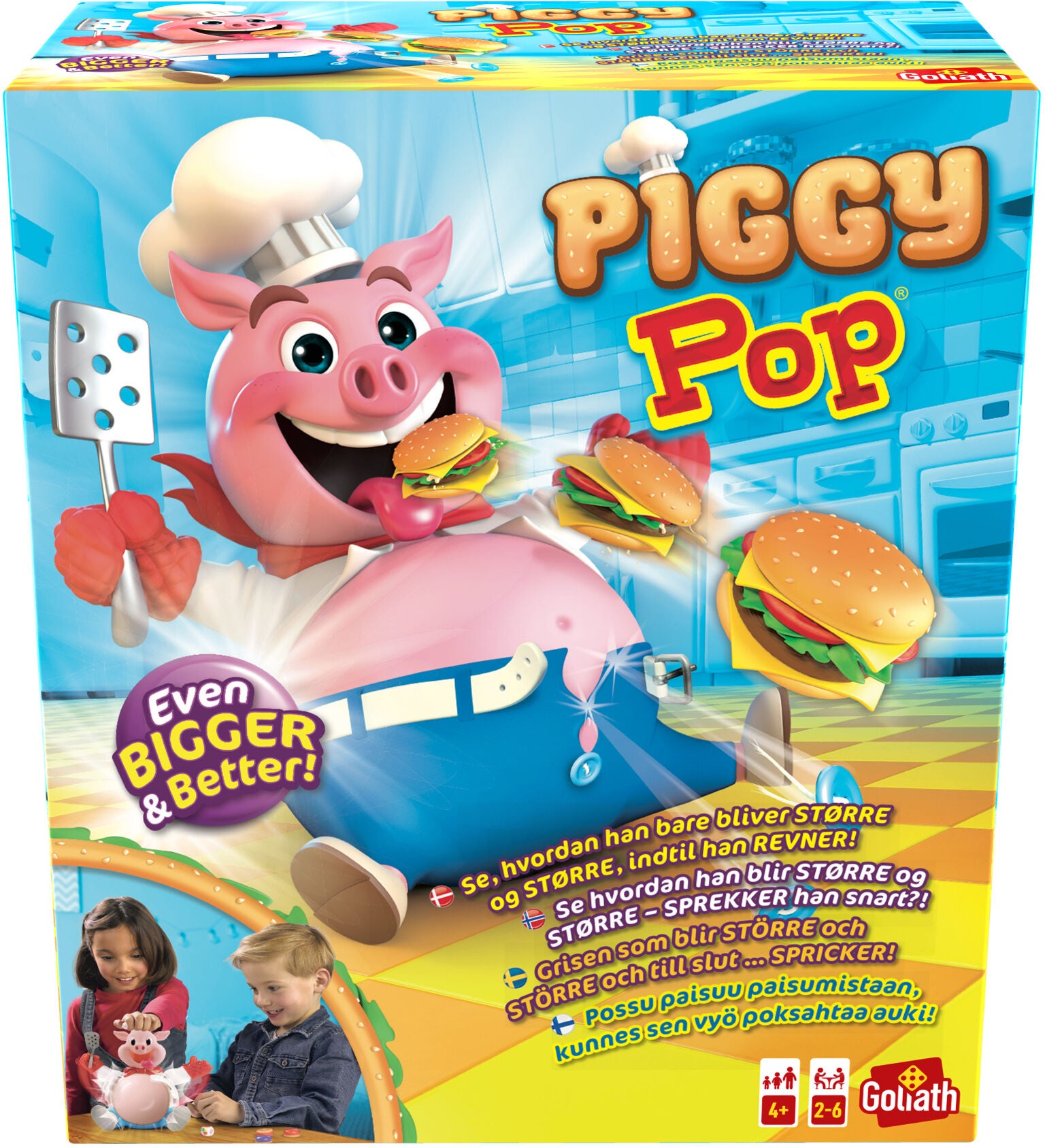 Sjovt spil fra Goliath Games. Piggy Pop-spillet byder børnene på sjove øjeblikke. Kast terningen, giv grisehamburgerne mad og se maven vokse. Men du må ikke være grådig! Hvis grisens bælte åbner sig, har du tabt spillet. CE-mærket. Anbefalet alder: Fra 4 år.
