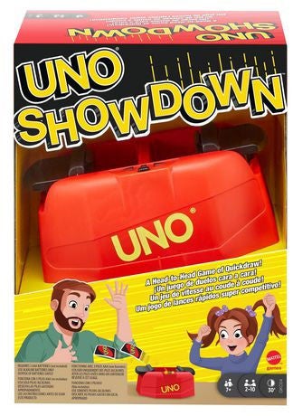 En ny version af det klassiske UNO-spil fra Mattel. Spillet går ud på at komme af med alle sine kort, så hurtigt som muligt. I dette spil, gælder det også om at slå kortmaskinen får dine modspillere, når den begynder at larme. Må den bedste mand eller kvinde vinde! Anbefalet alder: Fra 7 år.