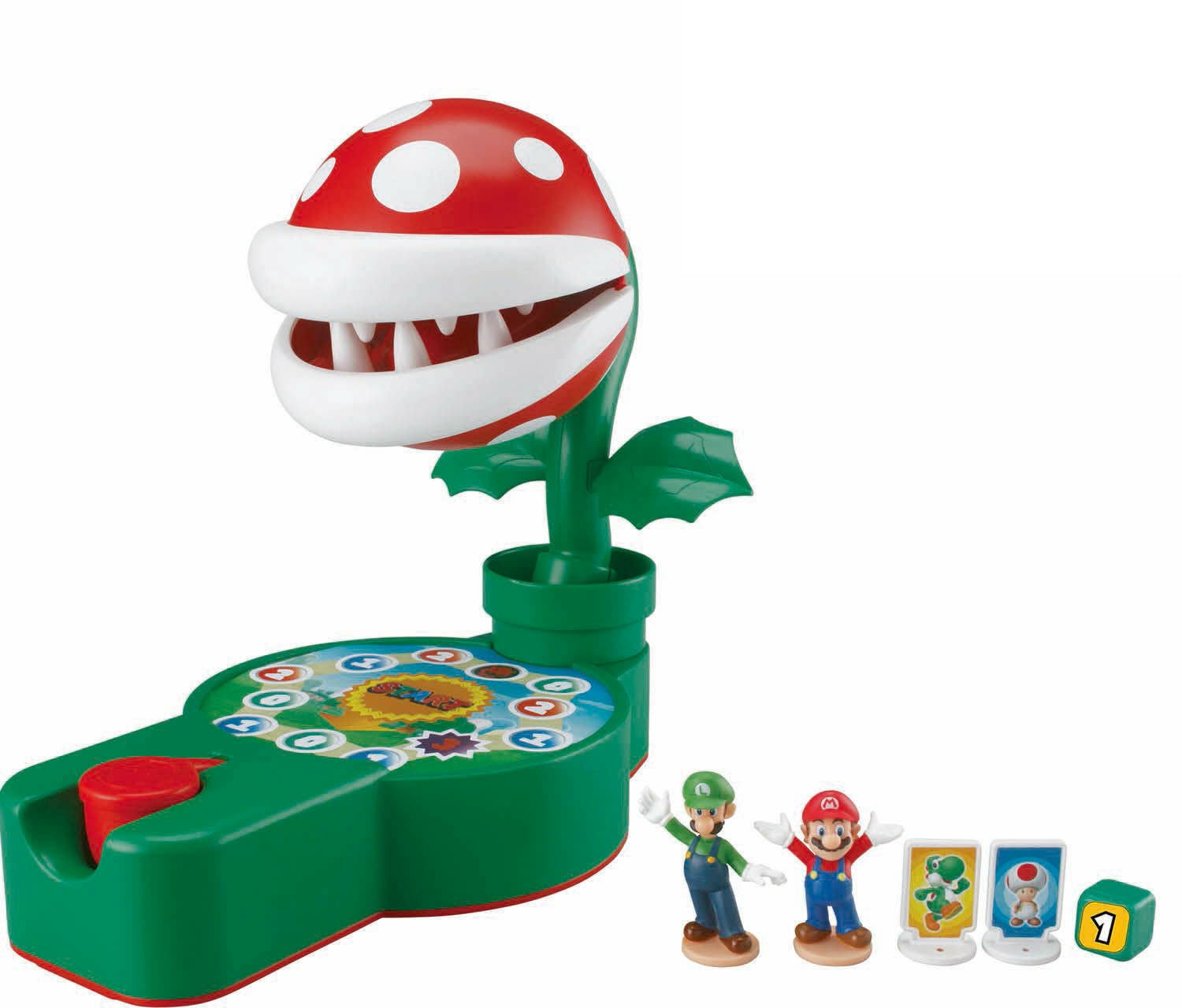 Brętspil fra Nintendo Super Mario med fire spilbare karakterer. Det har en terning og et spęndende spillebręt. Fųlg terningene og flyt din karakter over spillebręttet, men vęr forsigtig! Bliver du angrebet af planten i midten, taber du. To karakterer og to karakterplader medfųlger. Kan spilles med andre karakterer fra LINK SYSTEM. CE-męrket. Antal spillere: 2-4. Uegnet for bųrn under 3 år på grund af små dele. Anbefalet alder: Fra 4 år.