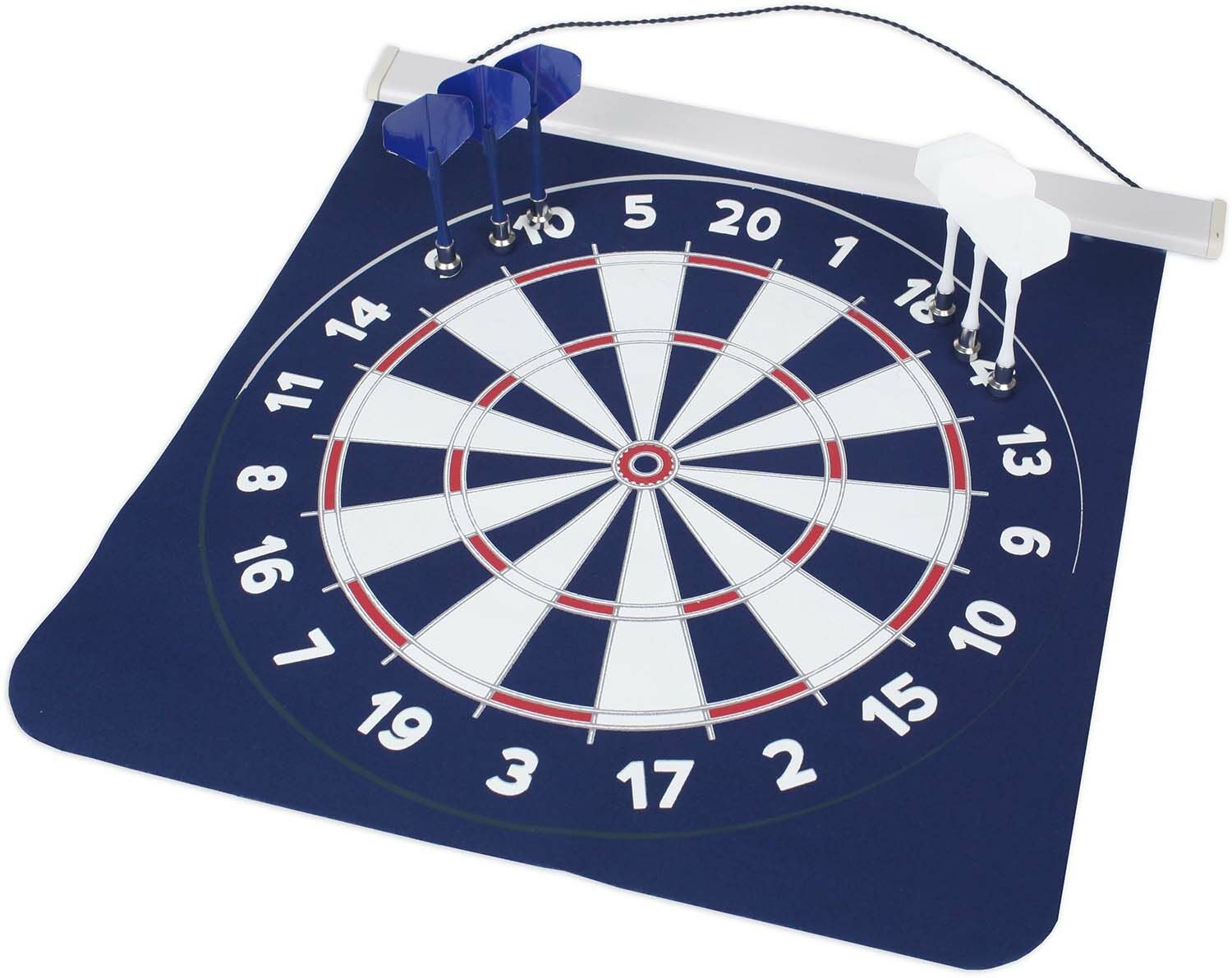 Sjov, navyblå dartskive fra Martinex til børn og juniorer med to spændende spil. Den har seks magnetiske pile. CE-mærket Anbefalet alder: Fra 3 år