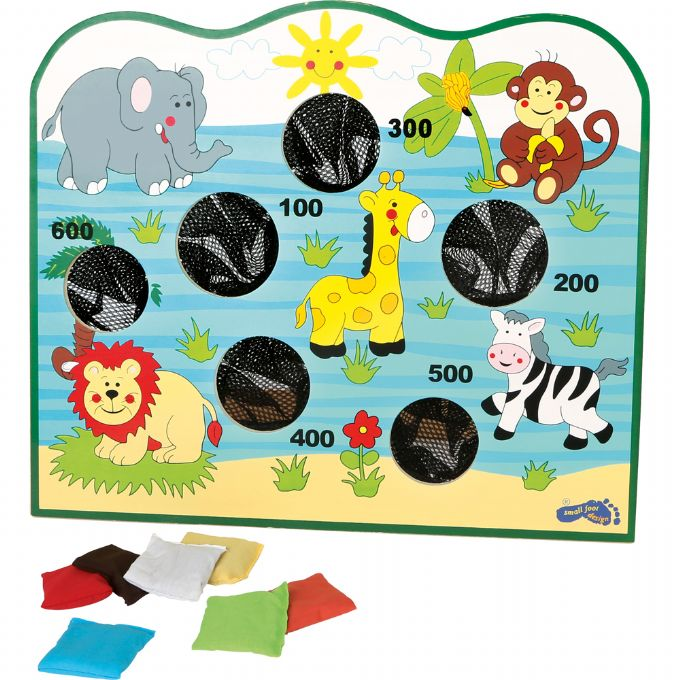 Træn hånd til øje koordination med denne kastestand. Se hvor mange point du kan få ved at kaste poserne i hullerne. Mål: 42 x 18 x 32 cm.