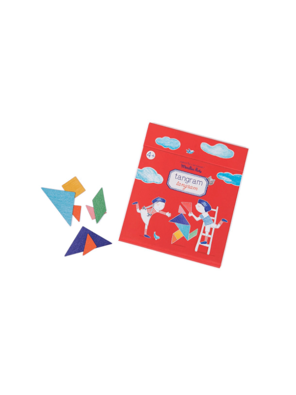 Magnetisk spil - Tangram Magnetisk tangram spil, er et sjovt spil med magneter i alle mulige former og farver. Børn kan lære at kopier billederne eller skabe deres egne designs. Magnetarket kan åbnes, stilles og spilles overalt. Det er praktisk og nemt a