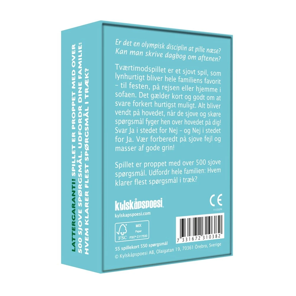 Er det en olympisk disciplin at pille næse? Kan man skrive dagbog om aftenen? Tværtimodspillet er et sjovt spil, som lynhurtigt bliver hele familiens favorit - til festen, på rejsen eller hjemme i sofaen. Det gælder kort og godt om at svare forkert hur