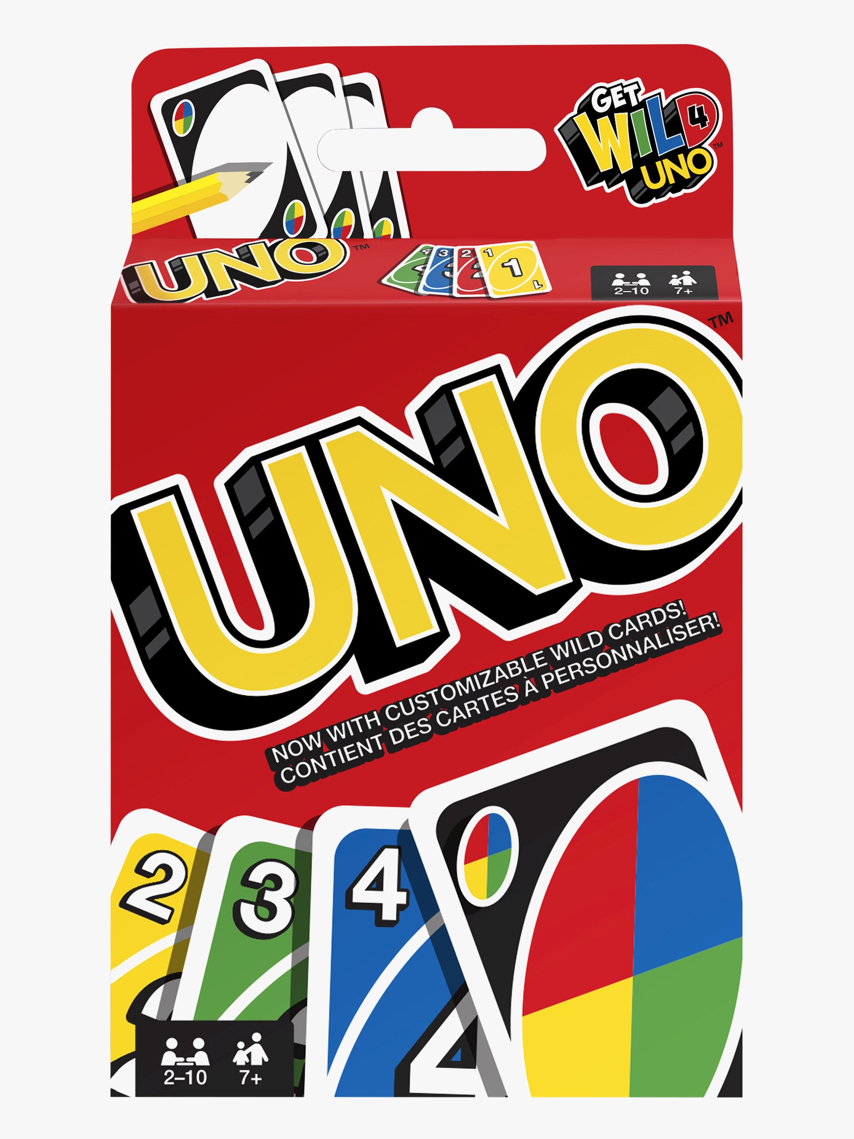 En klassisk kortspil for hele familien. UNO-spillet fra Mattel har flotte farver og er sjovt og nemt at spille Bare se, hvem der først kommer af med sine kort! Antal spillere: 210 prs. Anbefalet alder: Fra 7 år. Mål: 14,5 x 9,5 x 2 cm.
