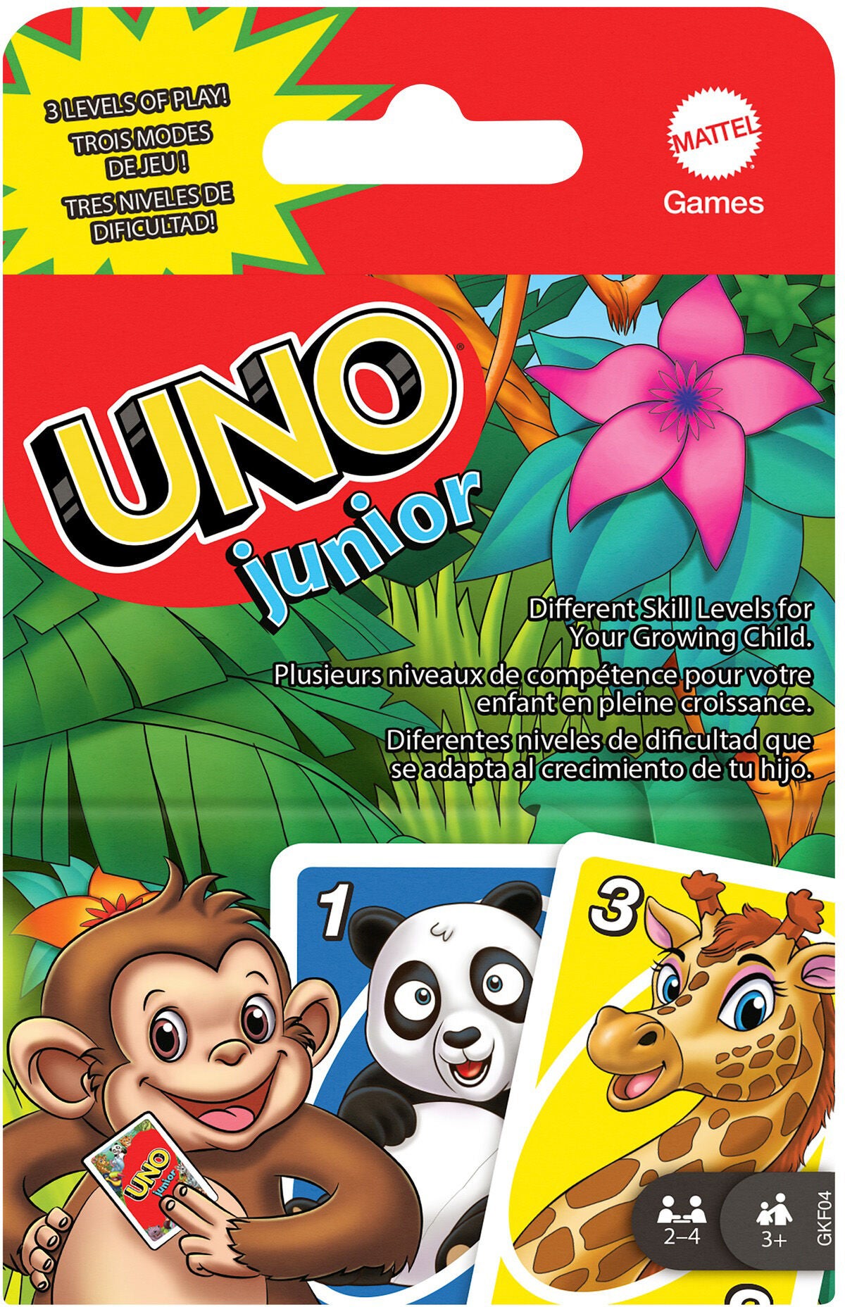 Børneversionen af det populære kortspil, UNO, hvor det går ud på at komme af med alle sine kort. Spillet har børnevenlige og farverige kort med motiver af dyr. Du kan vælge imellem tre sværhedsgrader alt afhængig af spillernes alder jo ældre desto sværere. Anbefalet alder: Fra 3 år.