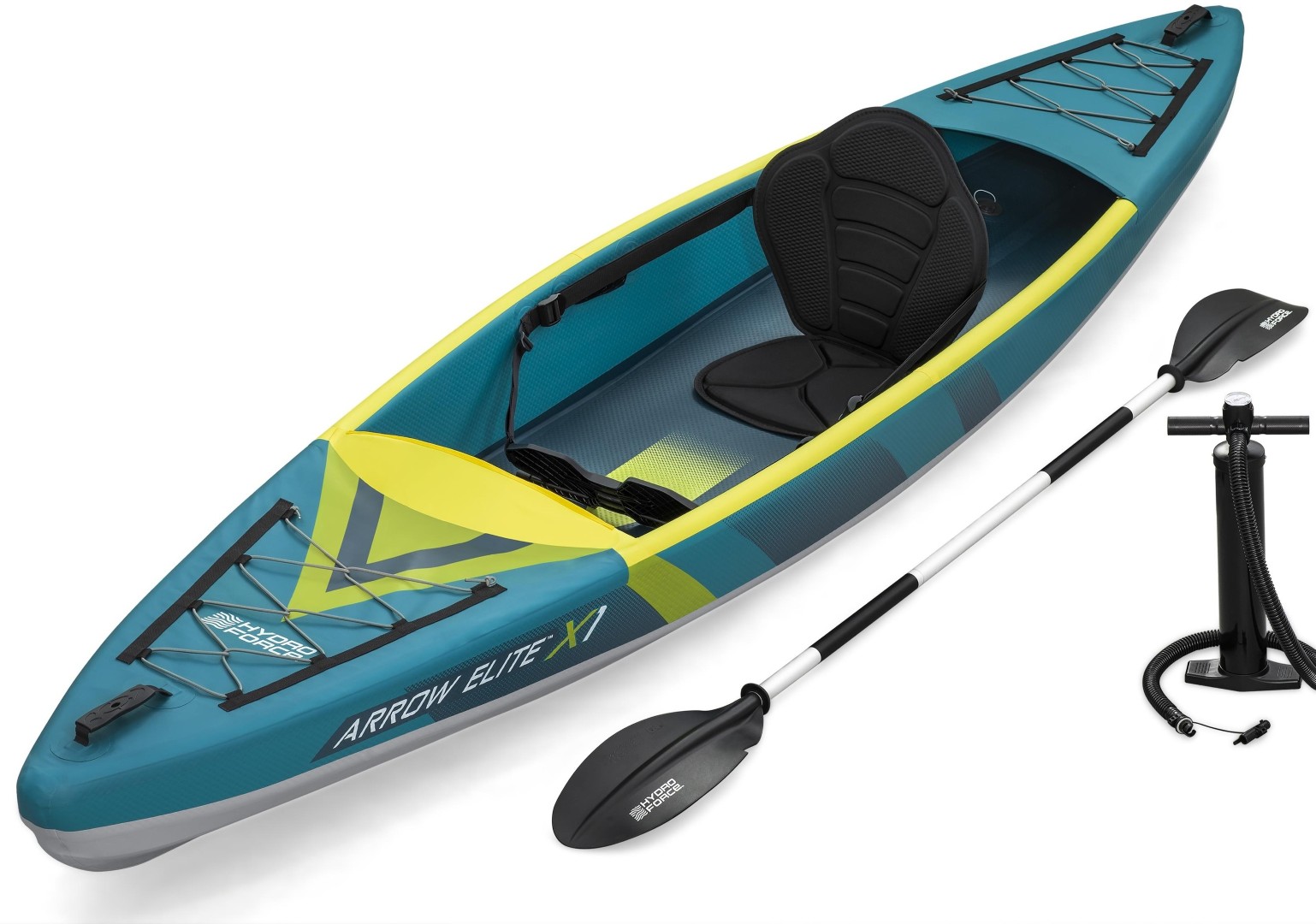 Hydro Force® Arrow Elite™ X1 Kajakken er det perfekte fartøj til at løfte dine udendørsoplevelser, uanset hvor dine vandture fører dig hen. Drop Stitch vægkonstruktion: Arrow Elites FortiFiber™ drop stitch-konstruktion er bygget til fartglade