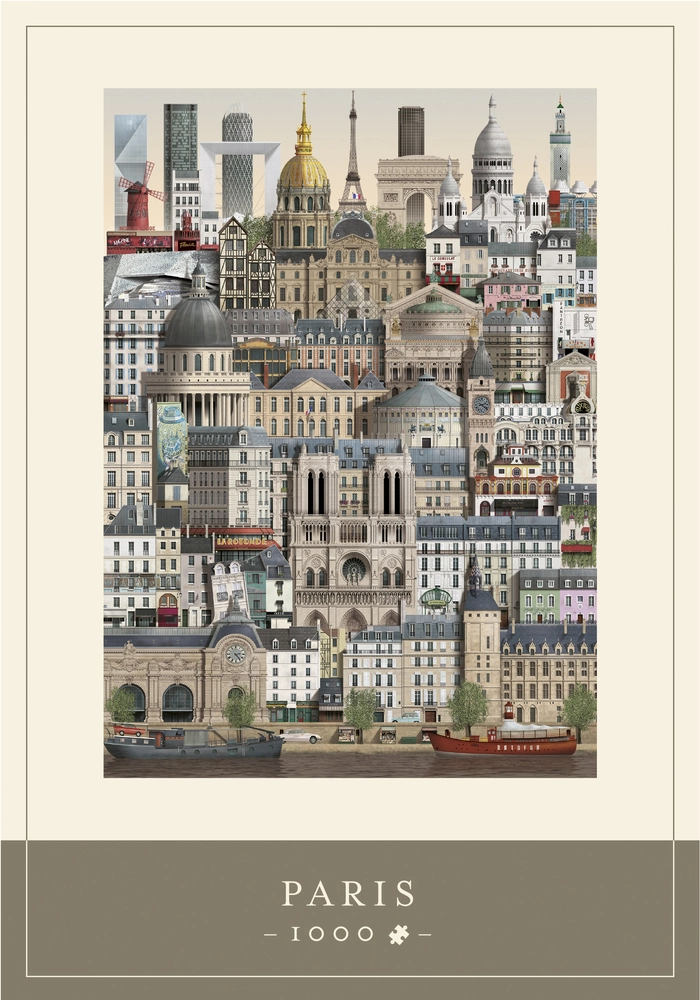 Samlede mål: 50 x 70 cm. Oplev Paris' charme og arkitektoniske vidundere med dette detaljerige puslespil fra Martin Schwartz. Med 1000 brikker tilbyder dette puslespil timevis af underholdning og udfordring, mens du langsomt ser byens ikoniske silhuet