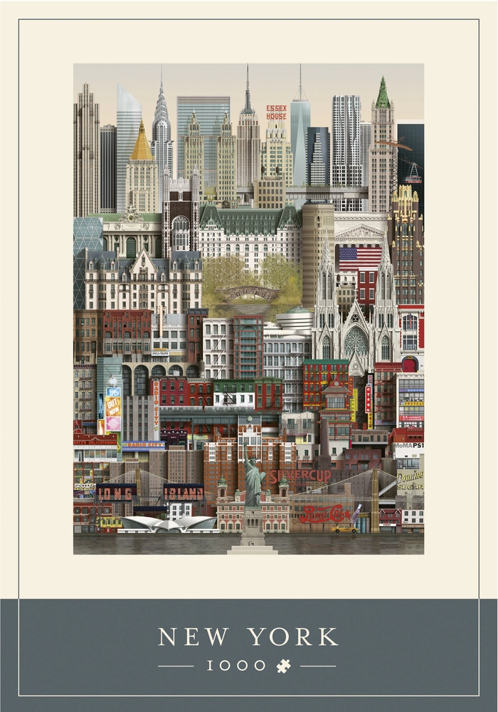 Samlede mål: 50 x 70 cm. Oplev New Yorks pulserende sjæl med dette detaljerige puslespil fra Martin Schwartz. Med 1000 brikker tilbyder puslespillet timevis af fordybelse og en unik mulighed for at udforske byens ikoniske arkitektur, som både vækker ge