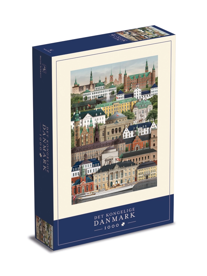 Gå på opdagelse med Martin Schwartz i Det Kongelige Danmark som er splittet i 1000 brikker. De ikoniske bygninger er nøje udvalgt og har alle en særlig tilknytning til Det Danske Kongehus. Puslespillet skaber en royal stemning af genkendelses glæde og nys
