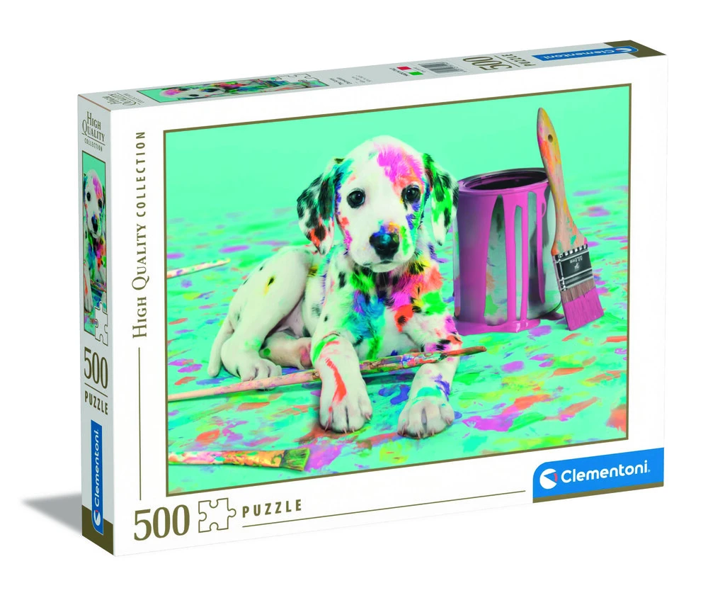 Samlet mål: 49 x 36 cm Oplev glæden ved at samle et farverigt puslespil med "The Funny Dalmatian" fra Clementoni. Med sine 500 brikker er dette puslespil en fornøjelse for både øjet og hjernen, og det færdige resultat måler 49 x 36 cm perfekt til at p