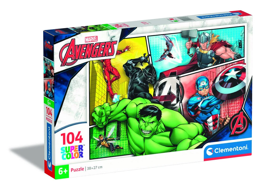 Samlet mål 48,5 x 33,5 cm. Dyk ned i superheltenes verden med Puslespil Avengers 104 brikker fra Clementoni. Dette puslespil er en fantastisk måde for børn at udvikle deres observationsevner og finmotorik, mens de samtidig har det sjovt. Med sine 104 b