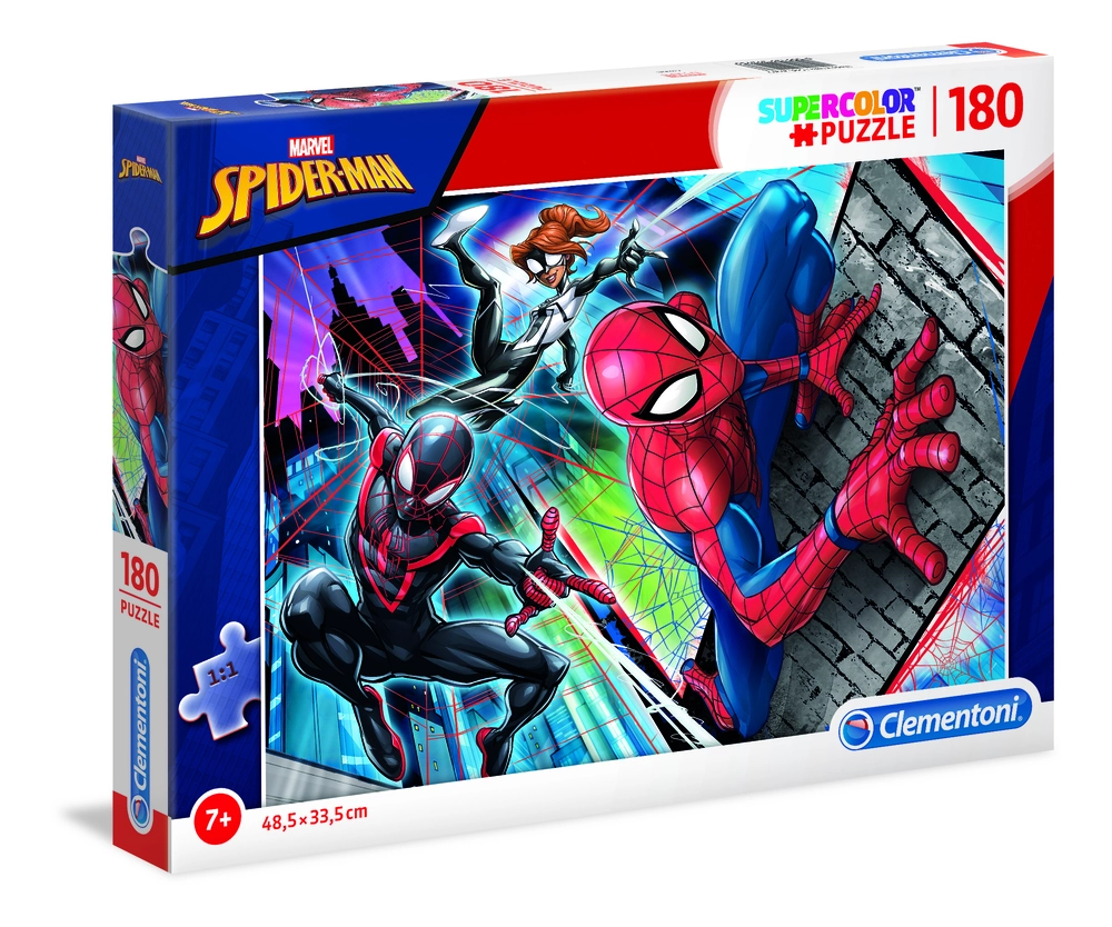 Samlet mål 48,5 x 33,5 cm. Dyk ned i superheltenes verden med Puslespil Spiderman 180 brikker fra Clementoni. Dette farverige puslespil er en fantastisk måde for børn at forbedre deres observationsevner og udvikle logiske samt manuelle færdigheder. Med