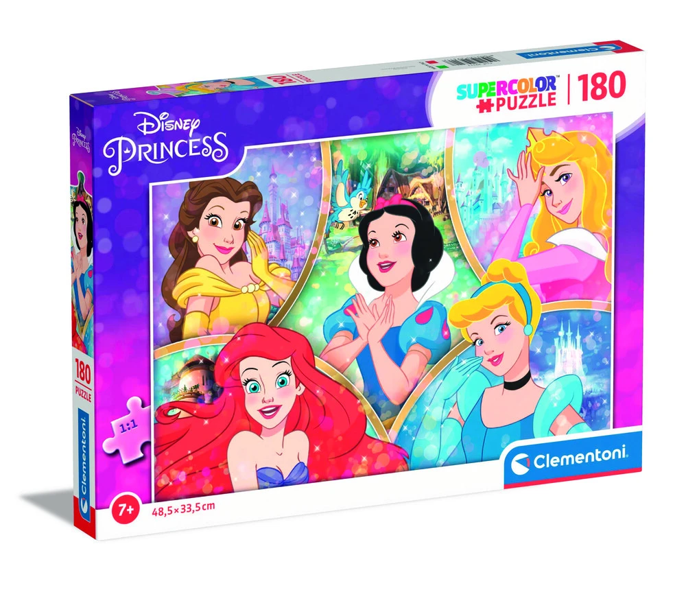 Samlet mål 48,5 x 33,5 cm. Tag familien med på en eventyrlig rejse ind i Disney-prinsessernes fortryllende verden med Puslespil Princess 180 brikker fra Clementoni. Dette puslespil er ikke kun en kilde til timevis af underholdning, men også en fantasti