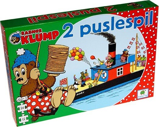 To sjove puslespil i én æske, med forskellige sværhedsgrader - de to puslespil indeholder henholdsvis 24 og 12 brikker. Alle elsker den pandekage-glade Rasmus Klump, og hvem kunne ikke tænke sig...