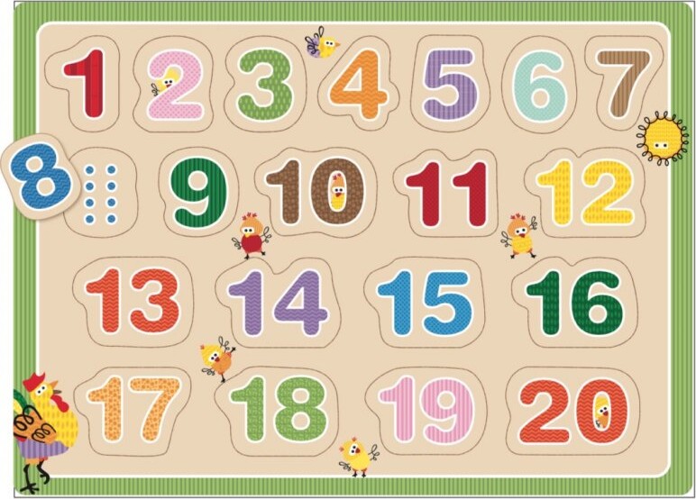 Dette tal puslespil i trę er en sjov og let måde at lęre tallene fra 1 til 20 på. Hvert tal har en bestemt plads på puslespillet, og brikken skal bare sęttes deri.  Tallene står i den rigtige...