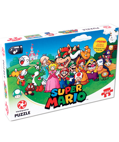 Familiehygge med Super Mario Puslespil Dyk ned i en verden af eventyr og leg med dette Super Mario Puslespil, der byder på 500 brikker fulde af farver og kendte figurer fra det elskede univers. Saml familien og genskab scener fra Mushroom Kingdom, mens I
