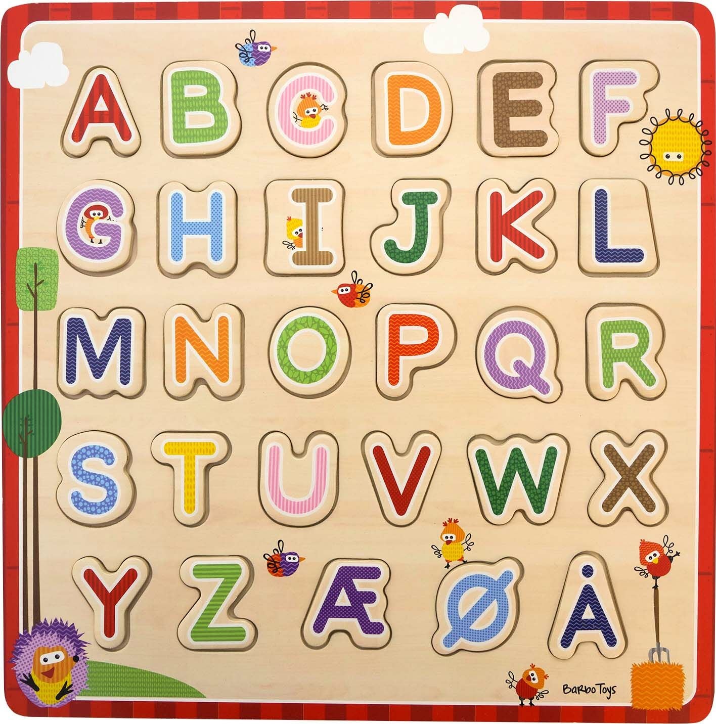 Træpuslepsil fra Barbo Toys. Lær dit barn det danske alfabet med dette hyggelige træpuslespil. Træn alfabetet ved at lægge puslespillet og styrk barnets bogstavslæring, fornemmelse for former, farvegenkendelse og hånd-øje-koordination. Træpuslespillet er en legende og hyggelig måde at lære alfabetet på, samt at få kendskab til vores alfabets store og små bogstaver. Anbefalet alder: fra 2 år.
