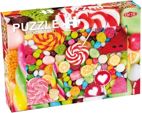 Et puslespil med slikmotiv fra Tactic. Puslespillet har 56 brikker og er perfekt til alle børn som elsker slik.