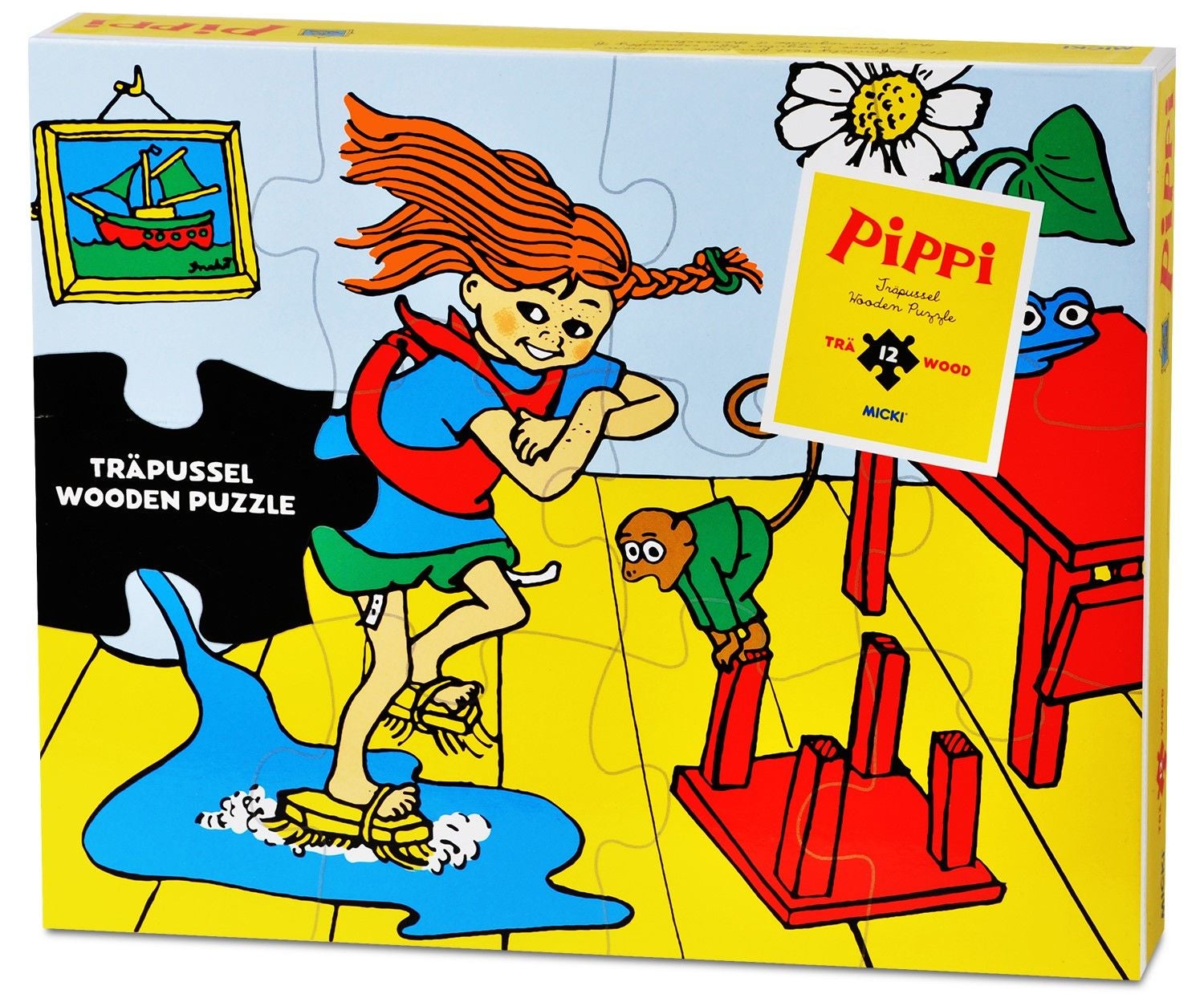Farverigt træpuslespil med Pippi Langstrømpemotiv. Læg brikkerne en efter en, og se motivet vokse frem. Puslespillet kan praktisk samles i sin egen kasse, og er perfekt at have med fx på en rejse. Illustrationerne er lavet af Ingrid Vang Nyman. Anbefalet alder: Fra 3 år.