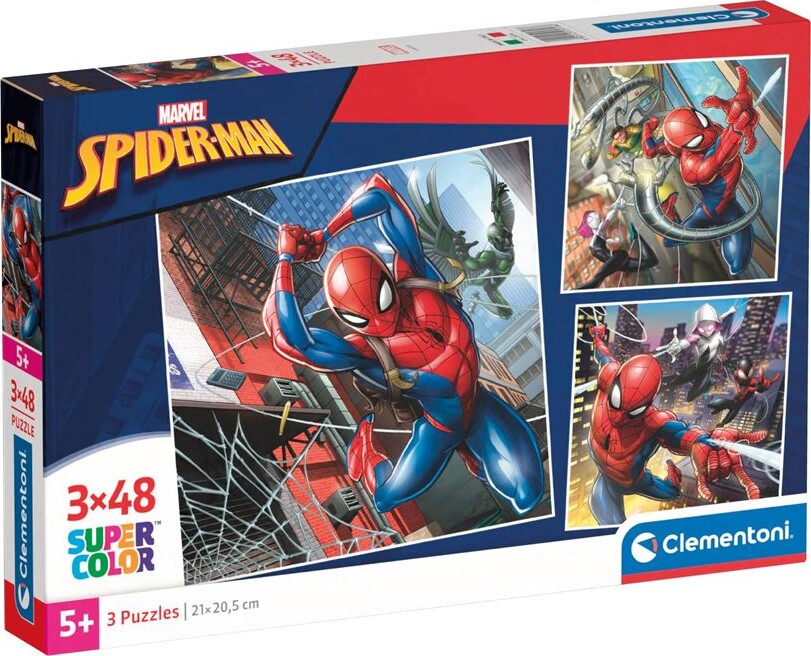Spider-man Puslespil - Super Color - 3x48 Brikker - Clementoni