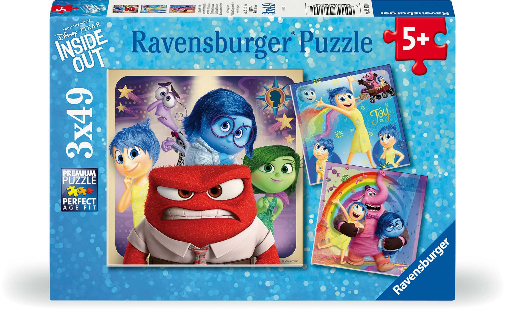Tre puslespil fra Ravensburger med inspirerende motiver fra Disneyfilmen, Inderst Inde. Perfekte til træning af dit barns koordination og finmotorik. - Indeholder 3 puslespil med 49 brikker i hvert. - Materialer af højeste kvalitet. - Perfekt til udvikling af finmotorikken. - CE-mærket. - Anbefalet alder: Fra 5 år. - Karton.