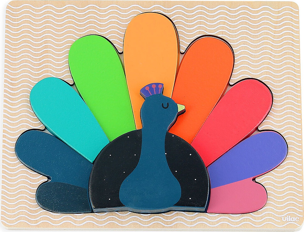 Vilac - Træpuslespil 12 Brikker - Påfugl Af Andy Westface