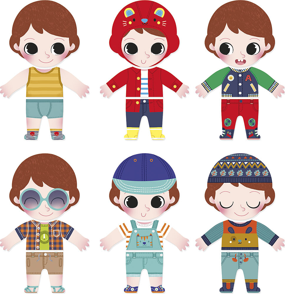 Påklędningsdukke Sacha, designet af Stéfanie Rousseau. Den fine trę-ęske indeholder 6...