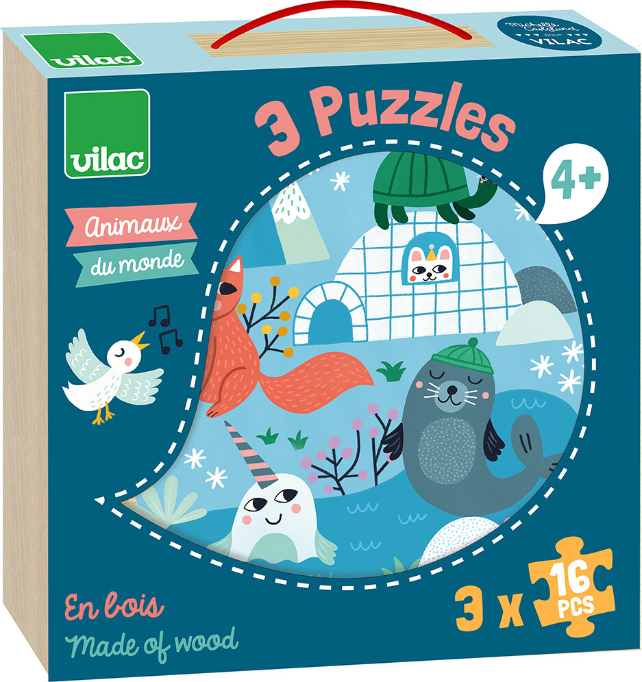 Vilac - Puslespil 3 X 16 Brikker - Dyr Af Michelle Carlslund