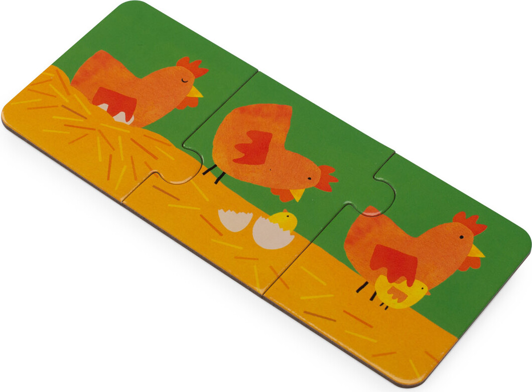 En farverig æske med 10 små puslespil og enkle, farverige illustrationer. Hvert puslespil har 3...