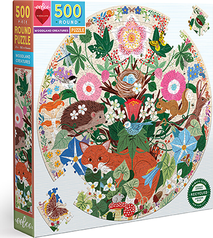 Eeboo - Rundt Puslespil 500 Brikker - Woodland Creatures