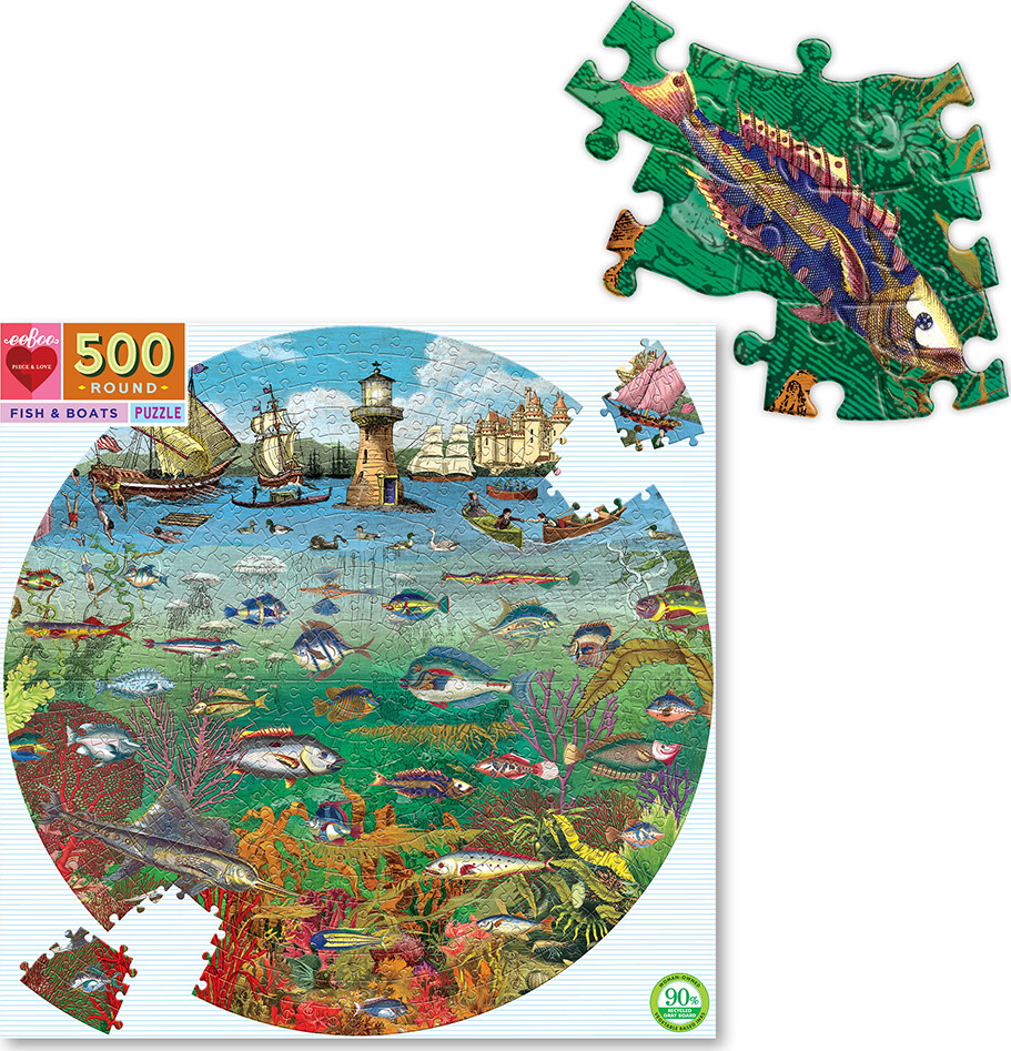 Eeboo - Rundt Puslespil 500 Brikker - Fisk Og Både