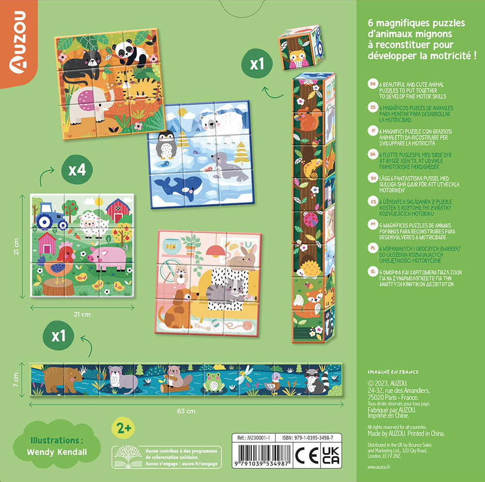 Auzou - Klodspuslespil 9 Brikker - Jungle Og Andre Søde Dyr