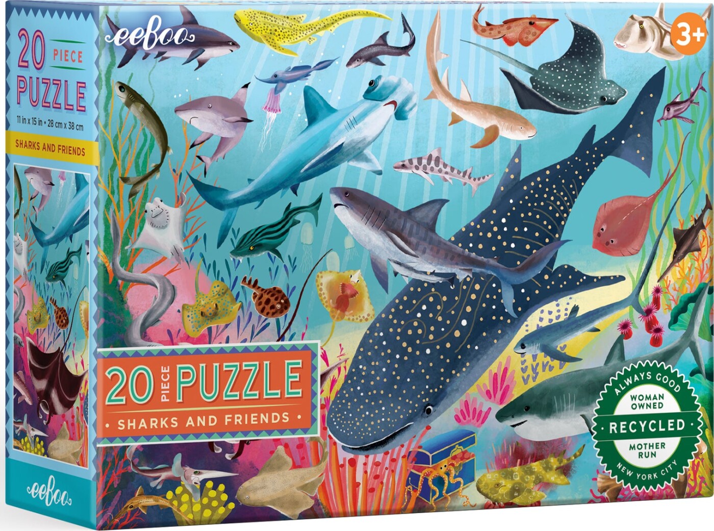 Eeboo Puslespil - Hajer Og Venner - 20 Brikker