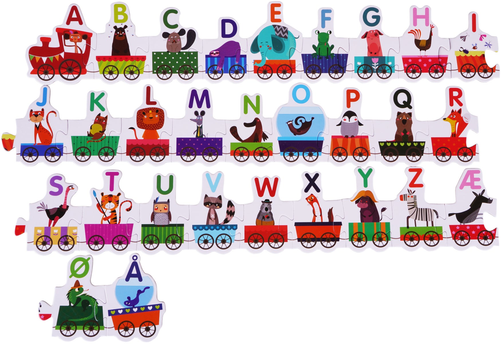 Puslespil fra Barbo Toys. Perfekt til at gøre det sjovt at lære! - 29 brikker. - Lær bogstaver. - Formet som et tog. - Muntre farver. - Praktisk opbevaringskasse. - CE-mærket. - Anbefalet alder: Fra 3 år.